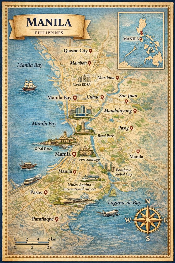 Manila offers a unique blend of historical landmarks, vibrant culture, and modern attractions. Enjoy exploring this dynamic city and immersing yourself in its rich heritage and lively urban scene!