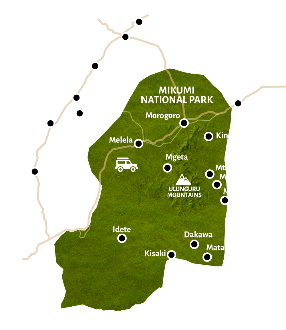 Location : The park is situated in the Morogoro Region of southern Tanzania, approximately 283 kilometers (176 miles) west of Dar es Salaam.